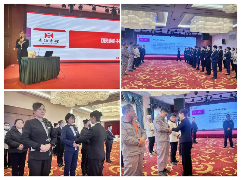 为确保专业性和高质量,活动准备阶段,公司特邀青海宾馆资深礼仪老师进行《服务礼仪》培训。以实操教学为核心,精准攻克礼仪手势痛点,老师采用示范、纠错的教学方式,让参训人员快速掌握核心内容,为服务礼仪展示活动顺利举行打牢了基础。